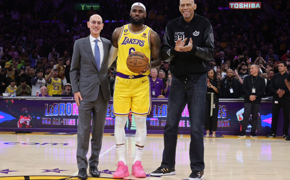 当詹姆斯在比赛中打破贾巴尔的历史得分纪录时,贾巴尔亲自来到现场,为詹姆斯送上祝贺。在那一刻,贾巴尔脸上的欣慰与认可溢于言表,他不仅见证了新纪录的诞生,更看到了 NBA 历史的传承与延续。贾巴尔的职业生涯同样辉煌至极,他是20世纪80年代的第一中锋,职业生涯共获得 6 枚 NBA 总冠军戒指和 6 次常规赛 MVP,这样的荣誉即便与詹姆斯相比,也更为夸张。在数据方面,贾巴尔的总得分、总篮板和总盖帽都位居 NBA 历史前3,无论是从个人荣誉、历史数据还是对联盟的影响力来看,贾巴尔都完全有资格成为詹姆斯的名人堂引荐人。他与詹姆斯之间的得分王传承,也让这份引荐更具历史意义。